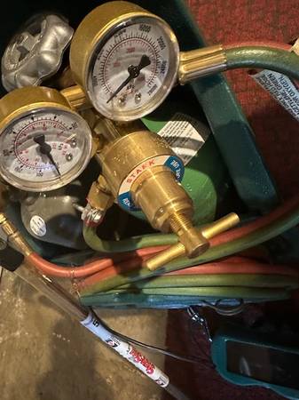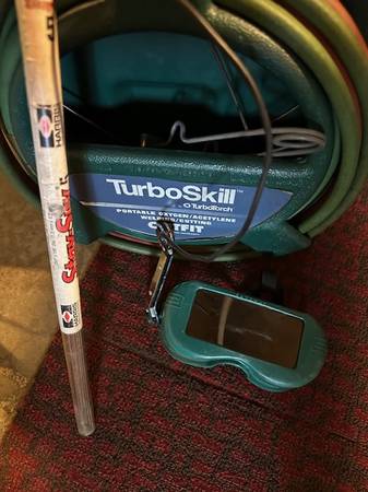 Turbo skill portable oxygen welding/cutting outfit with full tanks and 11 sticks Silver Brazing Alloy and tools/safety goggles.