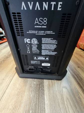 Avante Audio Achromic AS8 Column PA System is a 1000W system that includes an active 8-inch subwoofer enclosure and two column units. One column unit has six 2.75-inch speaker cones,