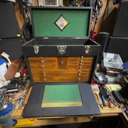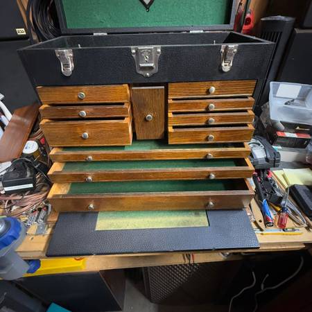 Vintage Gerstner & Sons Style 52 - 11 Drawer Oak and Leatherette Machinist Tool Chest