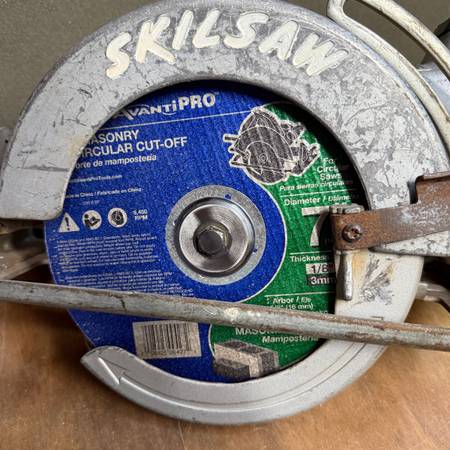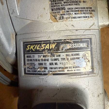 Strong quiet motor, new SKIL brand worm drive oil. New Masonry blade.