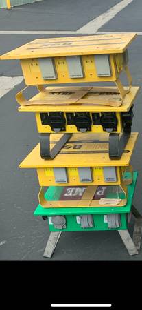 For Sale, 5-Used Temporary Power Distribution Centers / Used Job Site Temporary Power Up Equipment.. Aka, “Spider Boxes” @ 125v/20Amp, Power In @ 250v/50-Amp, All Total Up To 5-Spider Boxes &’ Are All Twist On &’ See Pictures Of Plug In Type, Selling Price Is For Each Box, Or Will Sell All The Boxes Together As One Lot,