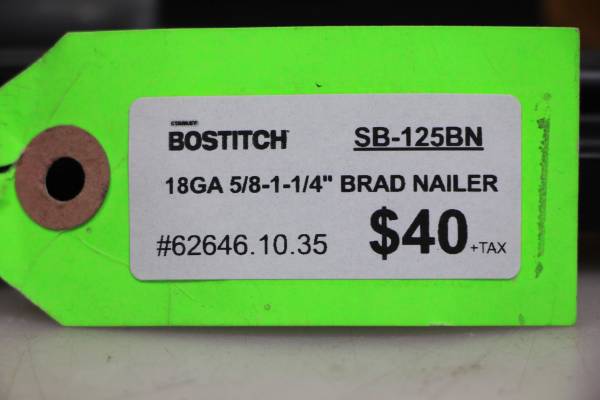 We are selling our Bostitch - 18GA 5/8-1-1/4" - Brad Nailer - SB-125BN. This item is in good condition. Great and reliable tool. Please call or text with questions . Please reference Stock # 62646...