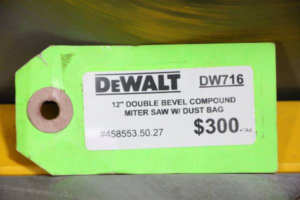 We are selling our Dewalt 12" Double Bevel Compound Miter Saw DW716 with Dust Bag. Please call or text with questions . Please reference Stock # 458553 when you call. ppc