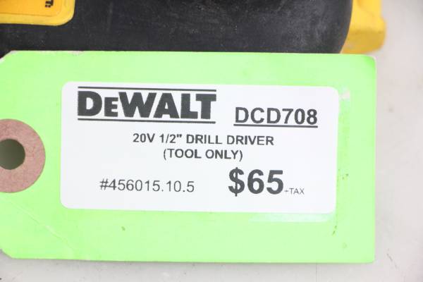 We are selling our Dewalt 20V 1/2" Drill Driver DCD708 (Tool Only). This drill driver does not come with battery or charger. Please call or text with questions . Please reference Stock # 456015 when...