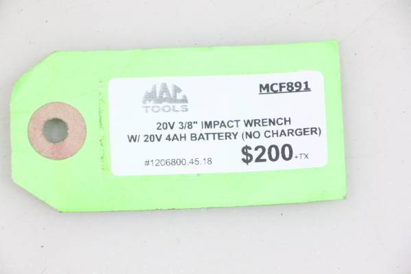 We are selling our Mac Tools - Impact Wrench - 3/8" - MCF891. This tool comes with battery only no charger. Please call or text with questions . Please reference Stock #1206800 when you call. ppc