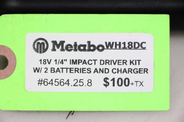 We are selling our Metabo 18V 1/4" Impact Driver Kit WH18DC. Yhis impact driver comes with two batteries and charger in original hard case. Please call or text with questions . Please reference...