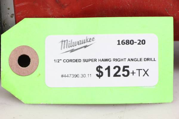 We are selling our Milwaukee 1/2" Corded Super Hawg Right Angle Drill 1680-20. Please call or text with questions . Please reference Stock # 447390 when you call. ppc