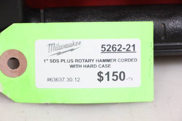 We are selling our Milwaukee 1" SDS Plus Rotary Hammer Corded 5262-21. This rotary hammer comes in its original hard case. Please call or text with questions . Please reference Stock # 63637 when...