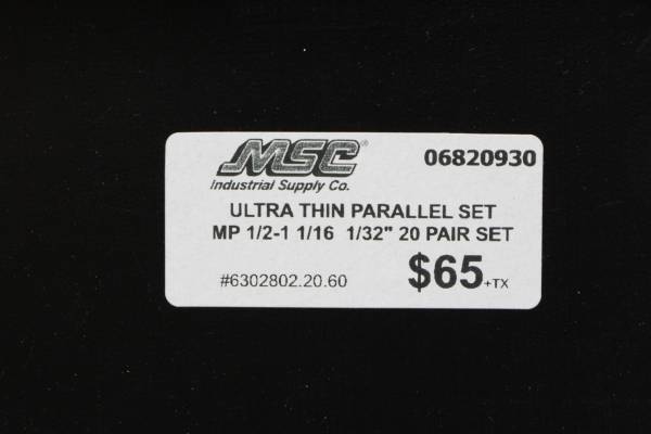 We are selling our MSC Ultra Thin Parallel 20 Pair Set MP 1/2-1 1/16 . This set comes in its original hard case. Please call or text with questions . Please reference Stock # 6302802 when you call....