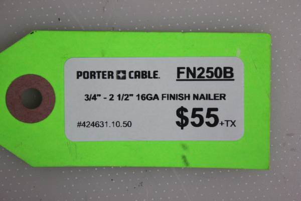 We are selling our Porter Cable FN250B 3/4" - 2 1/2" 16 GA Finish Nailer. Please call or text with questions . Please reference Stock # 424631 when you call. ppc