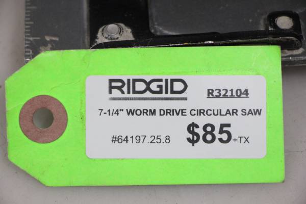 We are selling our Ridgid 7-14" Worm Drive Circular Saw R32104. Please call or text with questions . Please reference Stock # 64197 when you call. ppc