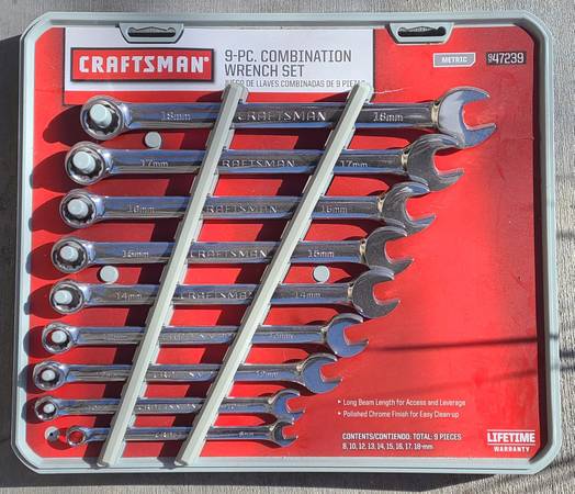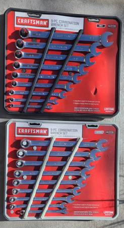 Two brand new sets of Craftsman 9 PC Combination Wrench Set with Long Beam Length and Chrome Finish for sell. The model number are 47238 and 47239, respectively. $50 for EACH set.