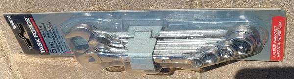 Brand new Task Force 5 pc metric combination wrench set, size 8 mm, 10 mm, 12 mm, 14 mm and 17 mm. Serious and cash buyer only.