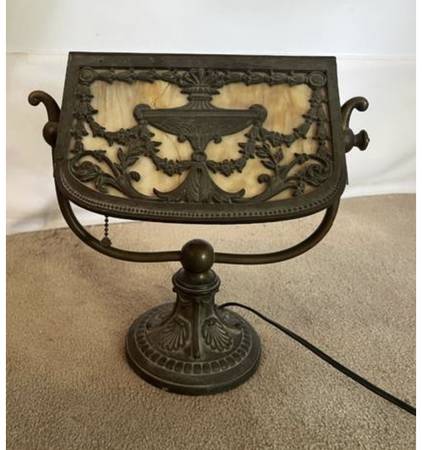 Bradley & Hubbord tilt top desk lamp with slag glass panels. 1920s Glass has a crack . Lamp needs small fix in the metal. Beautiful lamp.— RARE Find, only $325.00 (Lamp selling for $750 on eBay)...