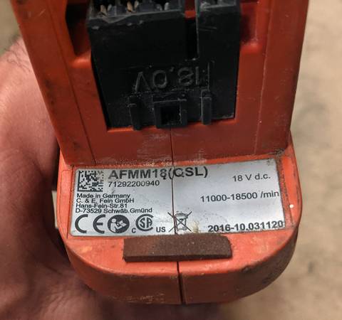 Offered: Fein AKKU Cordless Multimaster AFMM 18 QSL Oscillating Tool (starlock plus). Only the tool is offered, no battery or charger. Used, in very good condition, works fine. To purchase please...