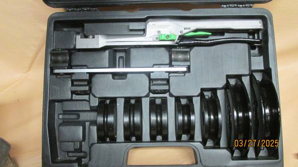 Here is a used Hilmor compact bender kit. It has sizes from 1/4" to 7/8". It comes with a carrying case, tube bender and attachments pictured. Check out the pictures. c1