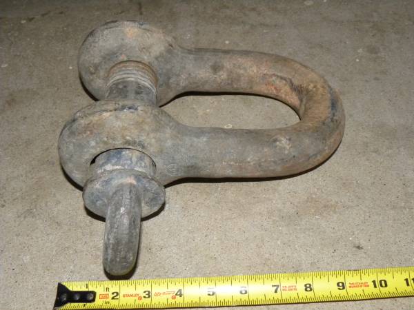 Large 2" Screw Pin Bolt Shackle Clevis Heavy Duty Towing Rigging 35 Ton? This shackle has no marking but from what i see Shackles with a 2" pin (which this one has) are usually 35 Ton. $100