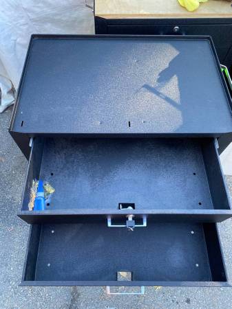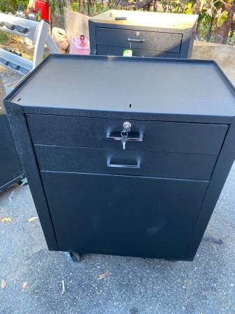 I have two of these rolling cabinets with storage in the bottom and two locking drawers, Both come with keys too. $149.99 for both or $80.00 each. They were assembled and only used to film a movie...
