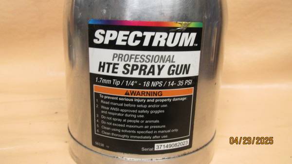 Here is a Spectrum hte spray gun. It has the spectrum 1.7 tip on the unit. It has the Spectrum cup with the unit. It says it is a 1.7mm tip 1/4-18 mps 14-35 psi.