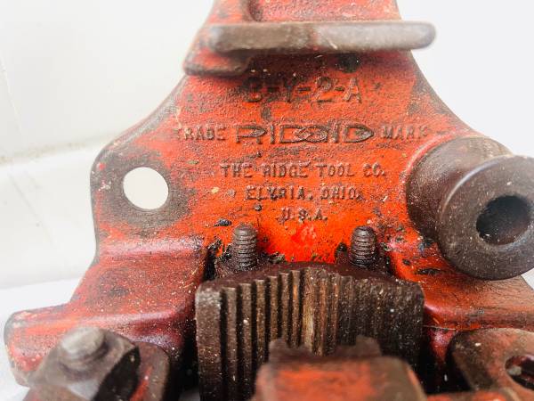 Up for sale my brothers Ridgid Pipe Vise vintage heavy duty Type B Y 2 A 1/8 to 2.5 Inch , this is a cool authentic made in usa rare vise unlike the new cheap imports, little rusty but works great and does the job better than the made in China ones, I am helping my brother clean up his garage, We sincerely Thank You for craiglisting, Lets recycle lets reuse and lets preserve our planet to the next generations to come.