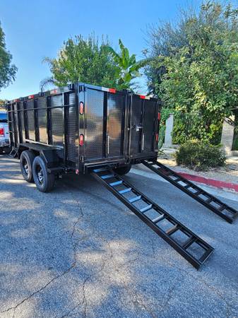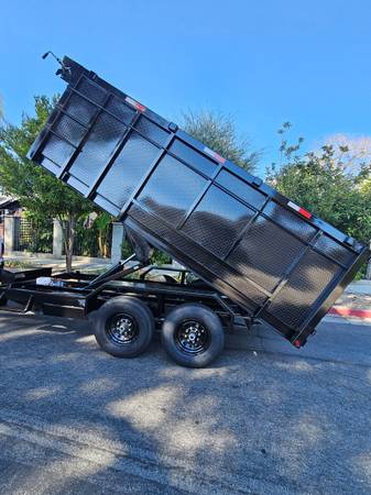 NEW DUMP TRAILER 14X8X4 HEAVY DUTY IDEAL FOR BOBCAT 8 LUGS,SCISSOR HOIST 7 TONS,ELECTRIC BRAKES 4 WHEELS, SET SLIDES RAMPS,ADJUSTABLE COUPLE,LED,2 LADDERS SIDES,LED LIGHTS,STEP SIDES,JACK 7000LBS,6 D RINGS FLOOR NEW DESIGN, TITLE IN HAND FOR ANY QUESTION TEXT ME PLEASE SE HABLA ESPAÑOL show contact info
