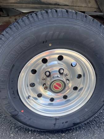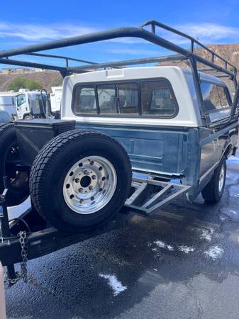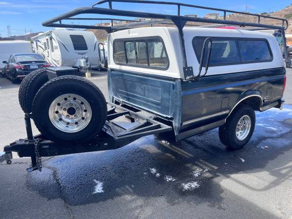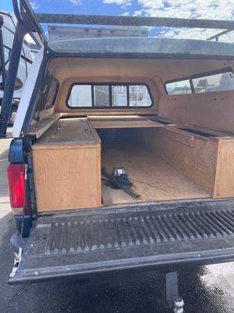 Custom made Ford bed truck trailer with new axle / electric brakes built by accurate hitch in Santa Clarita Ca . Camper shell and roof rack with kayak brackets .wood cabinets for bed and storage . Four brand new tires all terrain on factory Ford aluminum wheels . Two military storage boxes for tools and rear hitch . Everything is in good working order with CA Title and permanent CA plates .