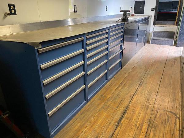 Lista Cabinets with parts washer. Storage cabinets, Driver’s lounge, mini fridge, sink, air conditioning.