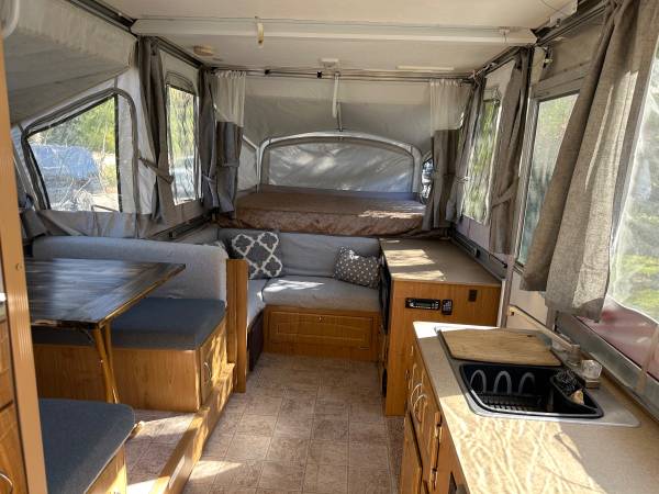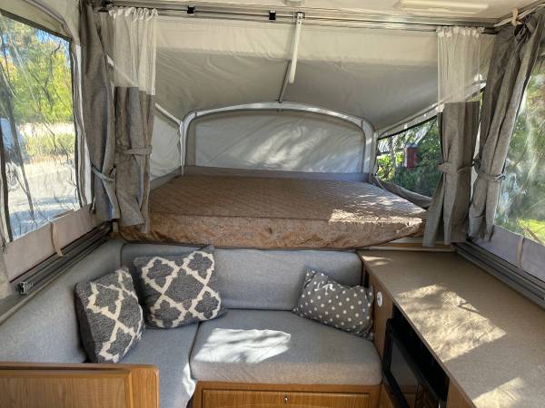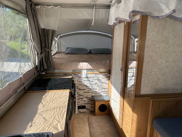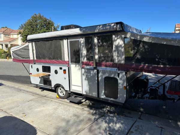 Fleetwood high wall (HW) Niagara– Excellent Condition, well cared for, and stored in garage. 14’ long when stored and 26’ long when open. 7’ tall ceiling. Registration is a one time charge of $15 because it’s considered a “Permanent Trailer.” Fits in a Standard garage so you don’t have to pay for storage. Ready to be used.