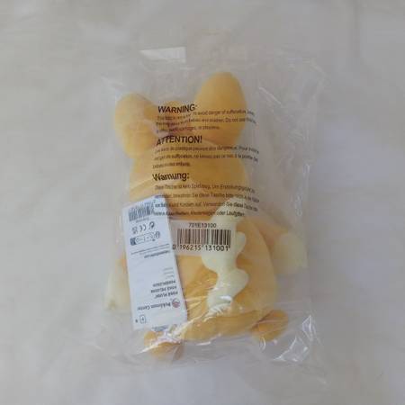 This plush is clean and still in its original plastic bag. It also has its hang tag and tush tag, they have both never been bent, they are in the same condition that they were when the item's box was opened just to check what was in side