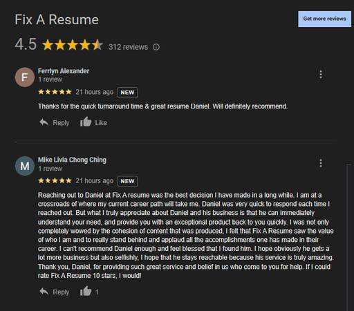 “Reaching out to Daniel at Fix A Resume was the best decision I’ve made in years. Not only was the quality incredible, but he truly understood my goals and experience. 10/10!”