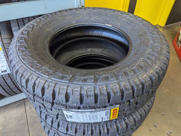 BRAND NEW LT265-70-17 PIRELLI SCORPION ALL-TERRAIN PLUS ALL-SEASON RADIALS ON SALE, $1100 FOR THE SET OF 4 MOUNTED, BALANCED, INSTALLED, WITH EXCHANGE OF OLD TIRES, LIMITED SUPPLY AT THIS PRICE, *THESE TIRES MAY SELL WHILE THE AD IS STILL UP. PLEASE CALL THE SHOP FOR AVAILABILITY. LOWEST PRICES AROUND, LARGE SELECTION OF NEW AND USED TIRES IN STOCK, TIRES BY STAN IN VAN NUYS, 7740 SEPULVEDA BLVD, BETWEEN STAGG and SATICOY. OPEN 7 DAYS MON - FRI 8 am to 6 pm, SAT 8 am - 5 pm, SUN 8 am - 4 pm, CALL (818) 782-8284