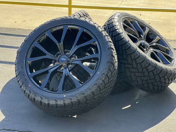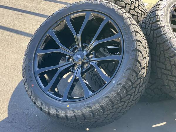 Brand new set of 4 22" gloss black aftermarket wheels with 285/45R22 TBB All Terrain or Goodyear Touring All Season tires