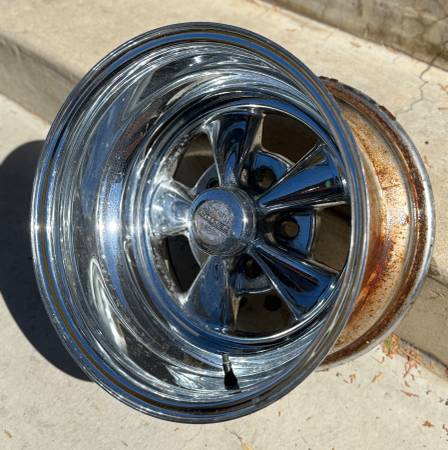 (1)Spare vintage chrome rim 15" X 10' Fenton Super hawk cragar style rims old school chrome wheels 5 lug 15X10 centerline American racing eagle alloy billet