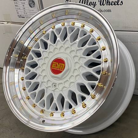 Brand new in box ESM-002R Wheels Available colors: Silver Machined lip, White machined Lip, Popular fitment for E30 BMW 318i 318is 325e 325is Mazda Miata Honda civic VW Jetta Golf GTI Mini Cooper...
