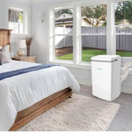 Portable air conditioner designed for a room up to 450 sq. ft.. 5.9-ft. power cord with LCDI plug uses standard 115V electrical outlet.