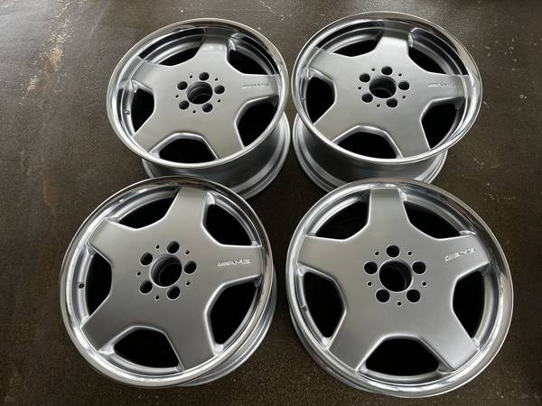 im selling my SET OF AMG MONOBLOCK STYLE ORIGINAL FROM MERCEDES BENZ S500 STAGGERED SET UP FRONT ARE 18" X 8.5" ET 43. REAR ARE 18" X 9.5 ET 46 ALL WHEELS ARE STRAIGHT - NO BENDS - Powder coated...