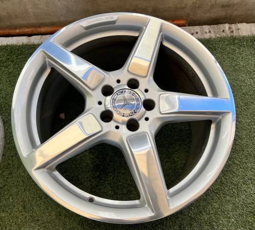 I HAVE FOR SALE MY SET OF 19" AMG ORIGINAL STAGGERED WHEELS THESE WHEELS ARE ORIGINAL SILVER COLOR AND CUSTOM POLISH FACE FRONT ARE 19" X 8.5" ET 34.5 REAR ARE 19' X 9.5: ET 48 ALL WHEELS ARE...