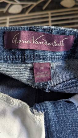 Two ladies size 16 capris. Would rather give them away than donate them. White and denim. The denim is more worn. The white are very crisp and new.