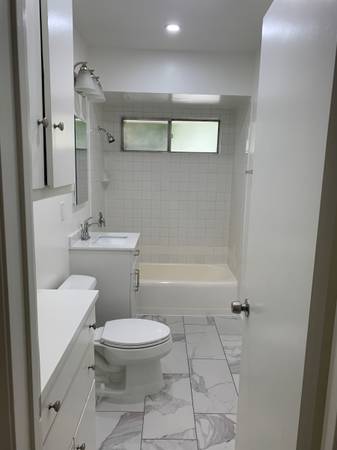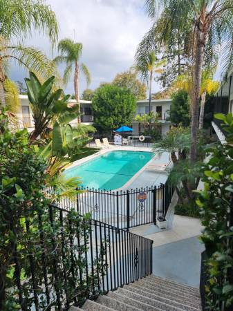 Beautifully renovated spacious 1 bedroom. Mountain views to the north, and tropical garden view with palm trees to the south. This is a Mid-Century complex with available unit overlooking sparkling pool in the center courtyard. Unit has nice size living room, bedroom, dining area in kitchen, and big bathroom with vanity, drawers and cupboard space. Walk to Northwood's Inn restaurant, shops and bus stop. It's located in a prestigious neighborhood of Michillinda Park, about a mile south of the 210 and Gold-line Railway, between Arcadia and San Marino. It's in close proximity to Starbucks, LA Fitness, banks, restaurants, Trader Joe's, Sprouts, Whole Foods, Hastings Ranch shopping center, Westfield shopping mall, Santa Anita Race Track, PCC and Cal Tech. Laundry and parking on premises. Apartment has VINYL WOOD FLOORING, stove new refrigerator, ceiling fans, recessed lighting, blinds, and big bathroom with vanity and shower over tub. Non-smokers only! No smoking of any substance on premises. Save over $250 a month with ALL UTILITIES FREE! One cat ok with small extra rent and deposit! Photos are of similar unit in building and square footage is approximate. Security deposit only $1050. Advertised rent and deposit for 1 occupant, additional amount for second, maximum two. Must have good credit. Application fee $65, includes credit check, reviewing and processing. Available now! Text Peter at show contact info