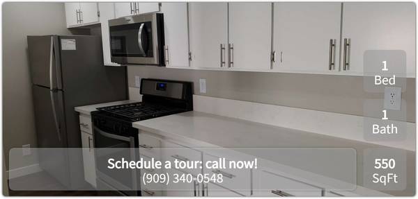 We currently have a gorgeous 1 bedroom 1 bathroom renting for $2028 - $2528 per month. This apartment home comes with 550 sq ft.