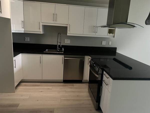 Gorgeous Black Granite Counter tops, High Gloss White cabinetry