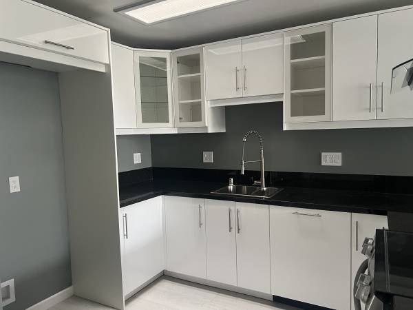 Gorgeous Black Granite Counter tops, High Gloss White cabinetry