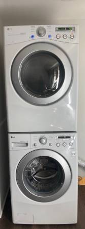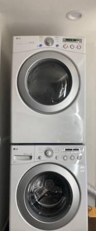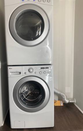 I have this great working set Of 2018 LG stackable set Works great! Very clean! Ready to install ! I can leave it fully setup and show it working. 27in wide 32in depth 78in height stacked I can also...