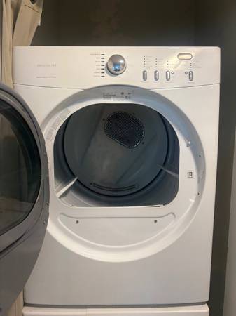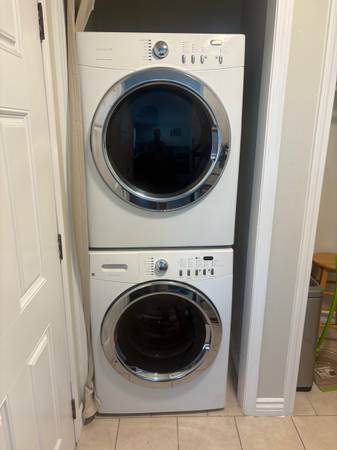 Frigidaire washer and GAS dryer 2015 year model Works great! I can install 27in wide 30in depth 72in height when stacked Energy star High efficiency