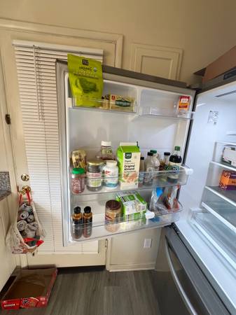For sale is an approximately 4 year old LG refrigerator. It works perfectly. The only reason I am selling is because I needed to clear out my apartment, so this, along with many quality apartment furniture pieces is for sale in order to clear out my rented storage, otherwise would keep. Has been a wonderful fridge that cools extremely well in both the fridge and freezer sections. No dents, no scratches, no stories. Holds a large amount of food. The doors were removed professionally in order to fit through the doorway to move to storage, so buyer will be able to fit through tight doorways without needing to take off doors. Fridge was cleaned and sterilized on the inside before placing in storage. The only reason the fridge is being sold is because it is being sold as a group with my other apartment belongings, otherwise I would keep. The storage facility has power in the front office and you are free to plug it in, see that it cools, test it to make sure it works to your satisfaction.