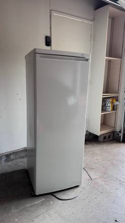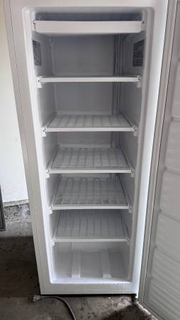 Upright Frigidaire freezer. Works great. 55in tall x 21in wide x 19 in deep. You pick up. $50 cash