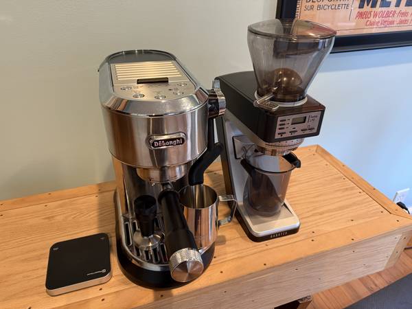 If purchasing new on Amazon, the expresso machine sells for $499, the grinder sells for $399, and the scale sells for $36. A $934 complete setup for just $600 (seller will not ship, cash only)
