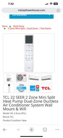 TCL 12,000 BTU MINI SPLIT AC unit for sale! Excellent working condition, INVERTER WITH 17 SEER2- 115V power Cools and Heats. WITH 15 Feet line sets. For $470 only....