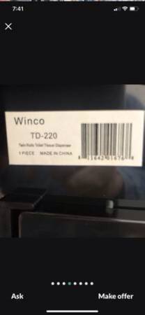 NEW WINCO DOUBLE ROLL TOILET TISSUE DISPENSER / TOILET PAPER HOLDER For Sale $30.00. I have 2 brand new Winco TD-220 Double Roll Toilet Tissue Dispensers for $30.00 each cash only! Text messages only! show contact info