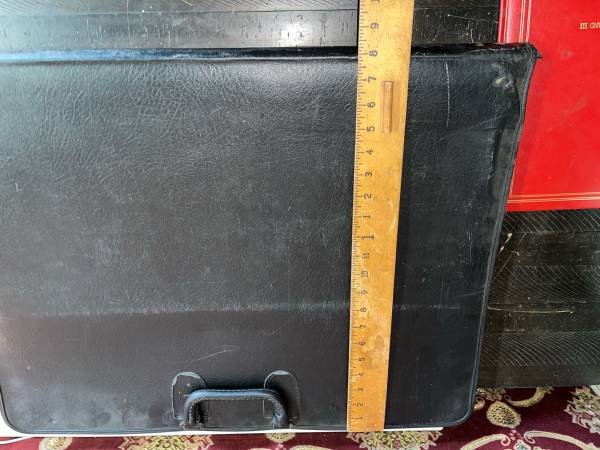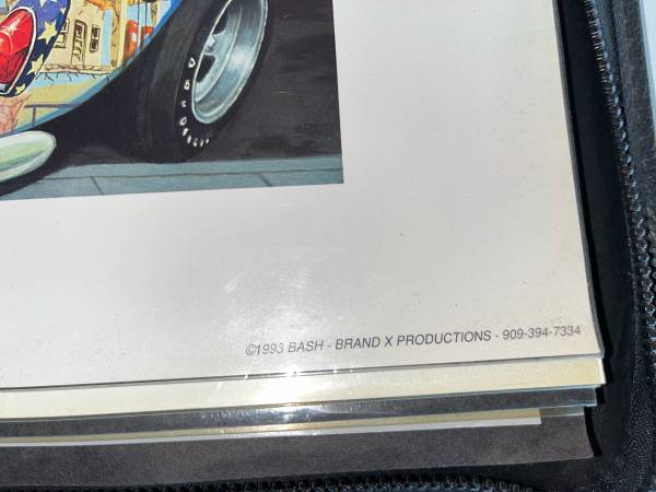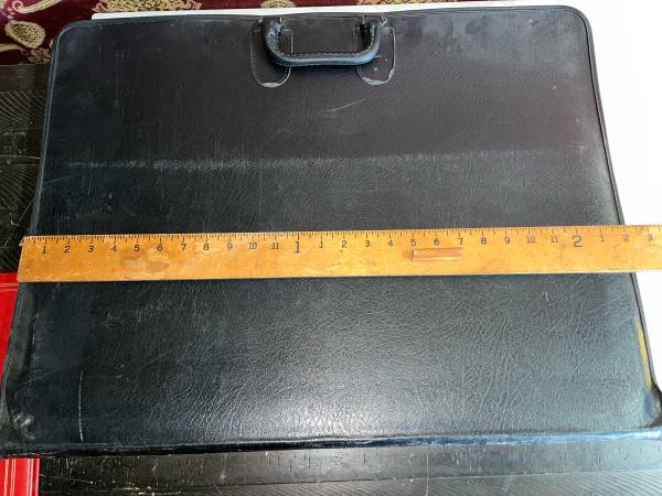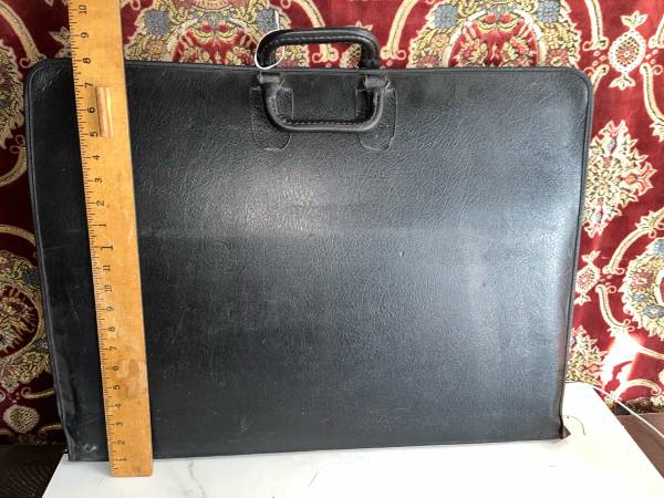 Large portfolio with plastic sleeves to protect and transport artwork. Artwork shown in pics are being sold separately and are not included. The portfolio has some of the stitching coming undone in one corner. It is still very rugged and reliable art protection.
